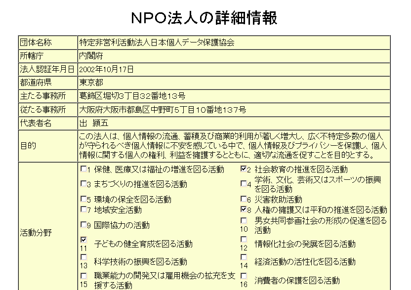 □NPO法人情報詳細(内閣府NPOポータルサイトによる検索結果/リンク先は検索トップ)