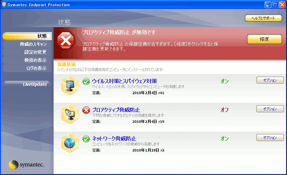 会社のセキュリティ対策ソフトが「Symantec Endpoint Protection」に変わった。