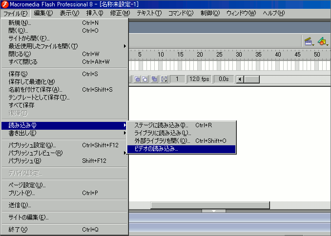 「ファイル」→「読み込み」→「ビデオの読み込み」