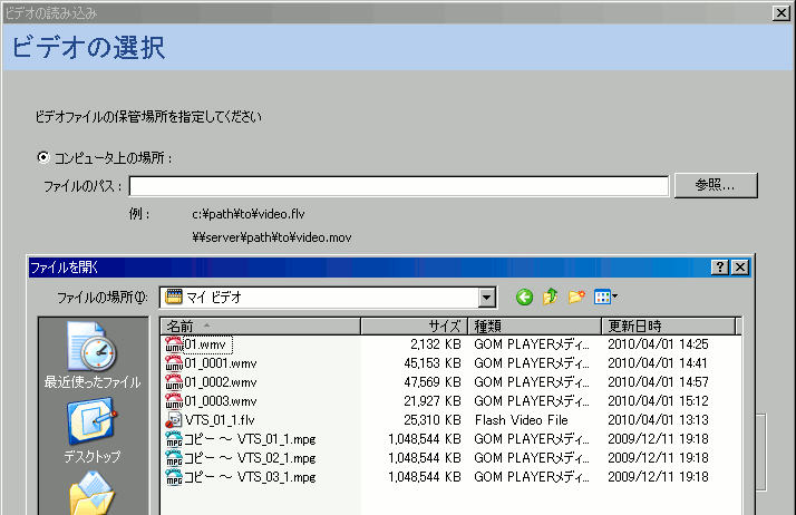 結構いろいろなファイルに対応しているみたいです。(「flv」はもちろん「wmv」や「mpg」等。ちなみにDVDからコピーした「VOD」データは「mpg」に拡張子を変えると読み込めます)