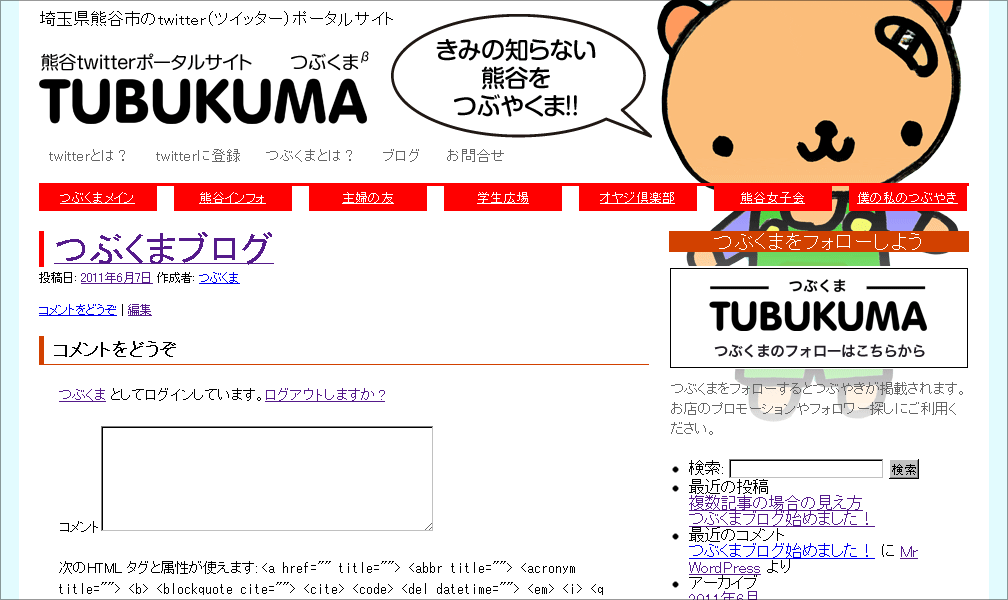 ■ 埼玉県熊谷市のtwitter(ツイッター)ポータル 【つぶくま】