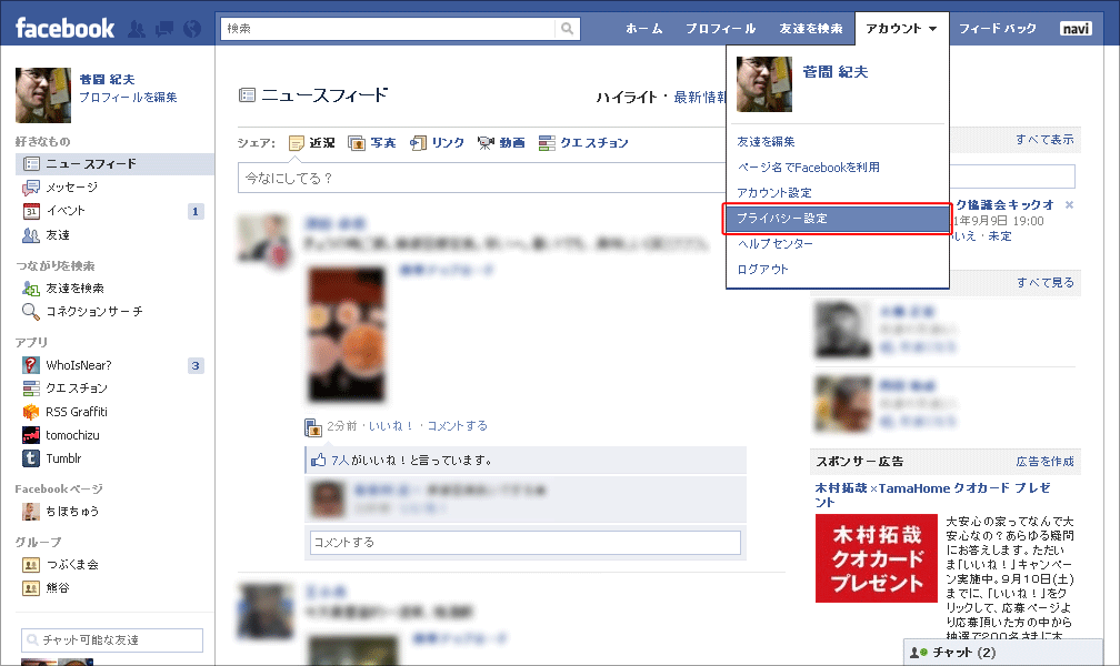これはmixiと似たような使い方で、日記(Facebookの場合のノート)やつぶやき(Facebookではウォール)はブログやツイッター、Flickr、はてブ、等、他媒体から連携させることでまかなっている。