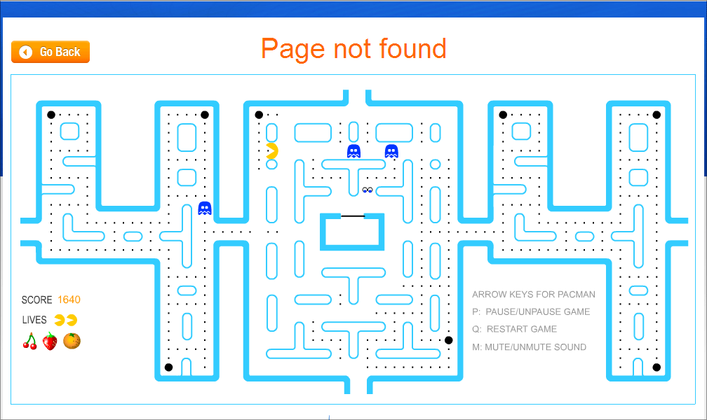 □ Pacman 404 Page | Blue Fountain Media