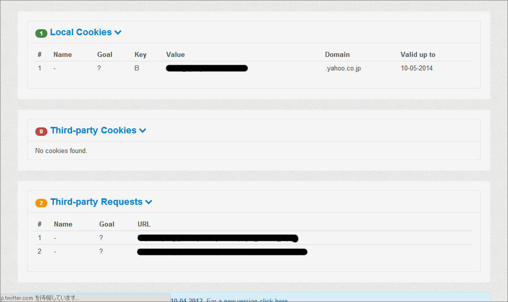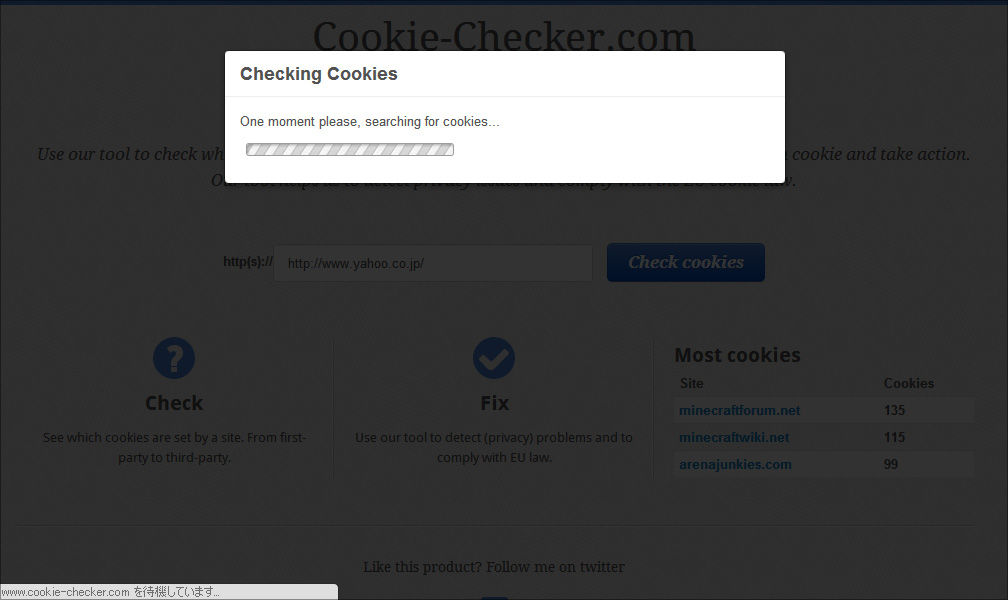 - Yahoo!で確認。トップページにURLを入力して「Check cookies」をクリック。