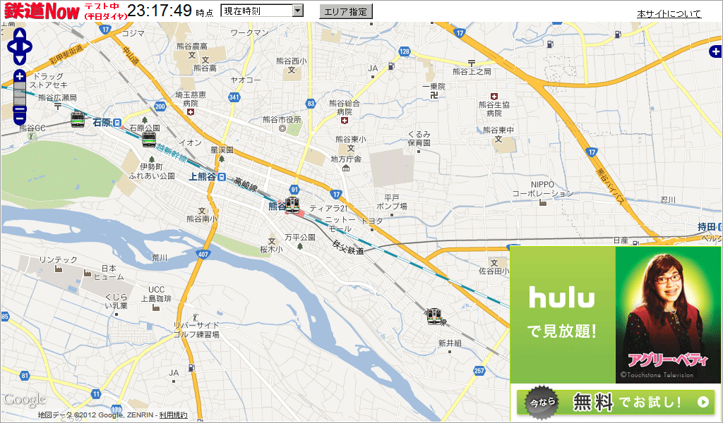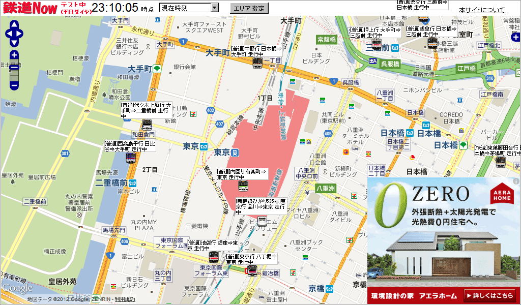 なんと、現在動いている電車がリアルタイムにどこにいるかわかるサイトだそうですが、