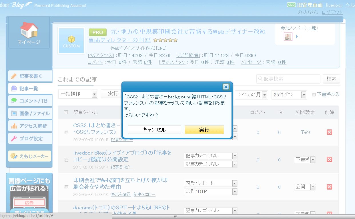 livedoor Blog(ライブドアブログ)で「記事をコピー」すると公開しちゃうゾ