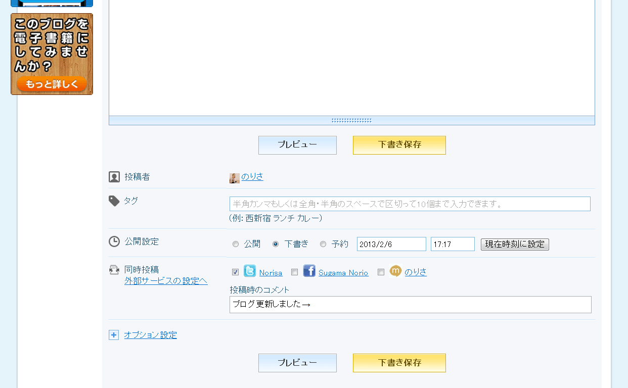 自分の場合、ブログを書くときは常に「下書き」モードにしています。