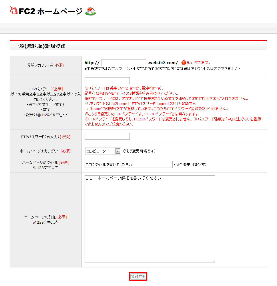 まずはFC2でのアカウント取得からFC2ホームページの契約まで。