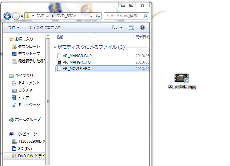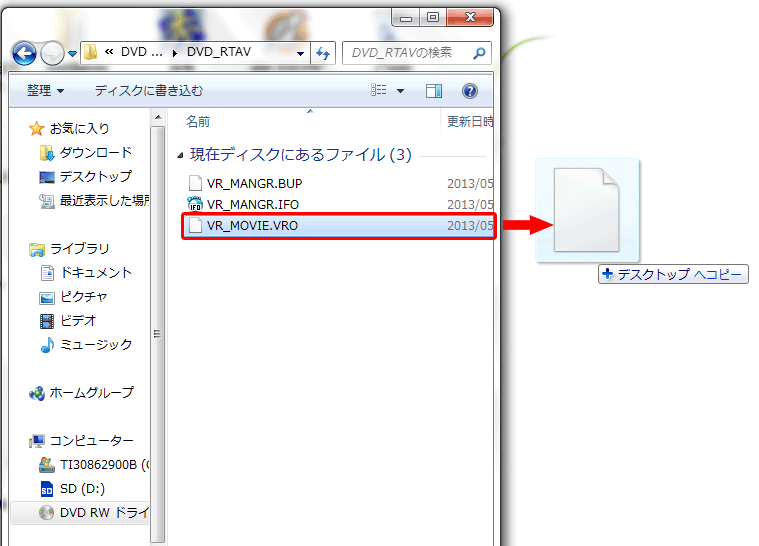 そのためにはパソコンにVROファイルをコピーしなければなりません。