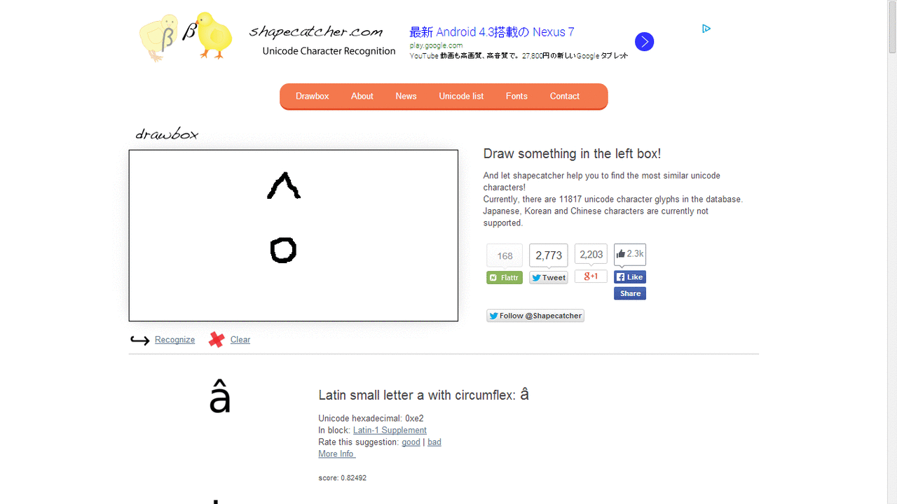ツイッター(Twitter)顔文字用の文字が探せるサイト「Shapecatcher」が便利