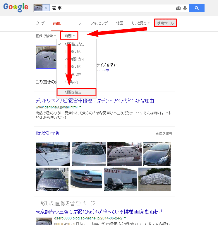「検索ツール」→「時間」→「時間を指定」と行き。