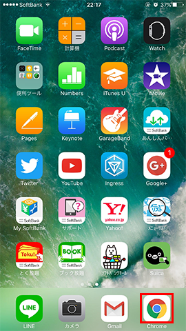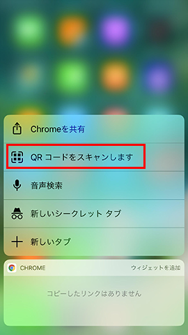 - 「Google Chrome」アイコンをプレス(「iPhone6s」以降搭載された機能、強めに長押しします)します。