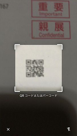 - 後はQRコード読み取りアプリと同様、四角の枠にQRコードをかざし、ピントの会うところまで移動させると、