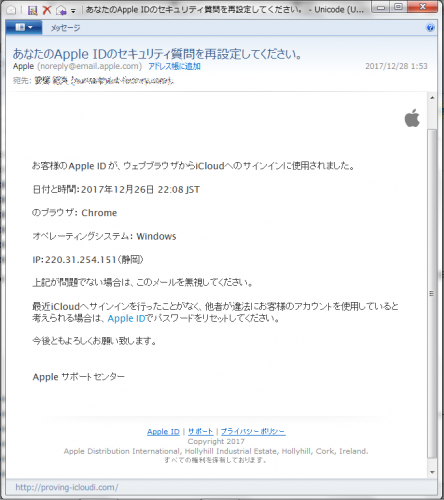 年末フィッシングメール(スパムメール)に注意!! 見に覚えのない「Apple ID」と「Edy」の利用通知メールに引っかかったw
