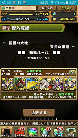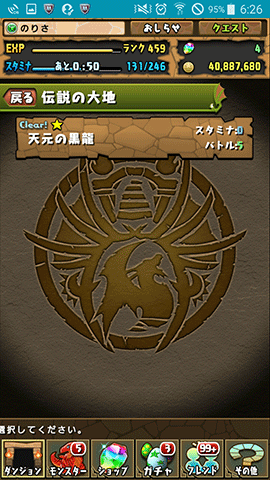 消費スタミナ「0」ですからプレイし放題。特におススメは伝説の大地(天元の黒龍)ですね。