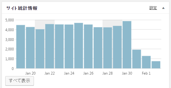 2月1日の午前中にWordPress側の設定をhttpsからhttpに再度切り替えておきましたが、2月1日のPVをみたところそれも殆ど効果がなかったようです。